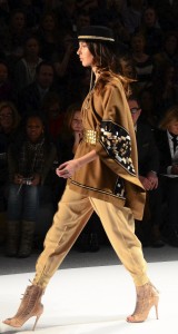 Carlos Miele presented his FW2012 collection at Mercedes Benz NYFW. It utilized warm capes, themes borrowed from the Southwestern U.S., bright yellows, golds, checkered patterns, and hatch patterns to bring individuality, distinction and creativity to these seasonal garments. Polished ‘ranchero’ looks were juxtaposed to yellow and black evening wear in a thematically cohesive collection.-Peter Ronen
