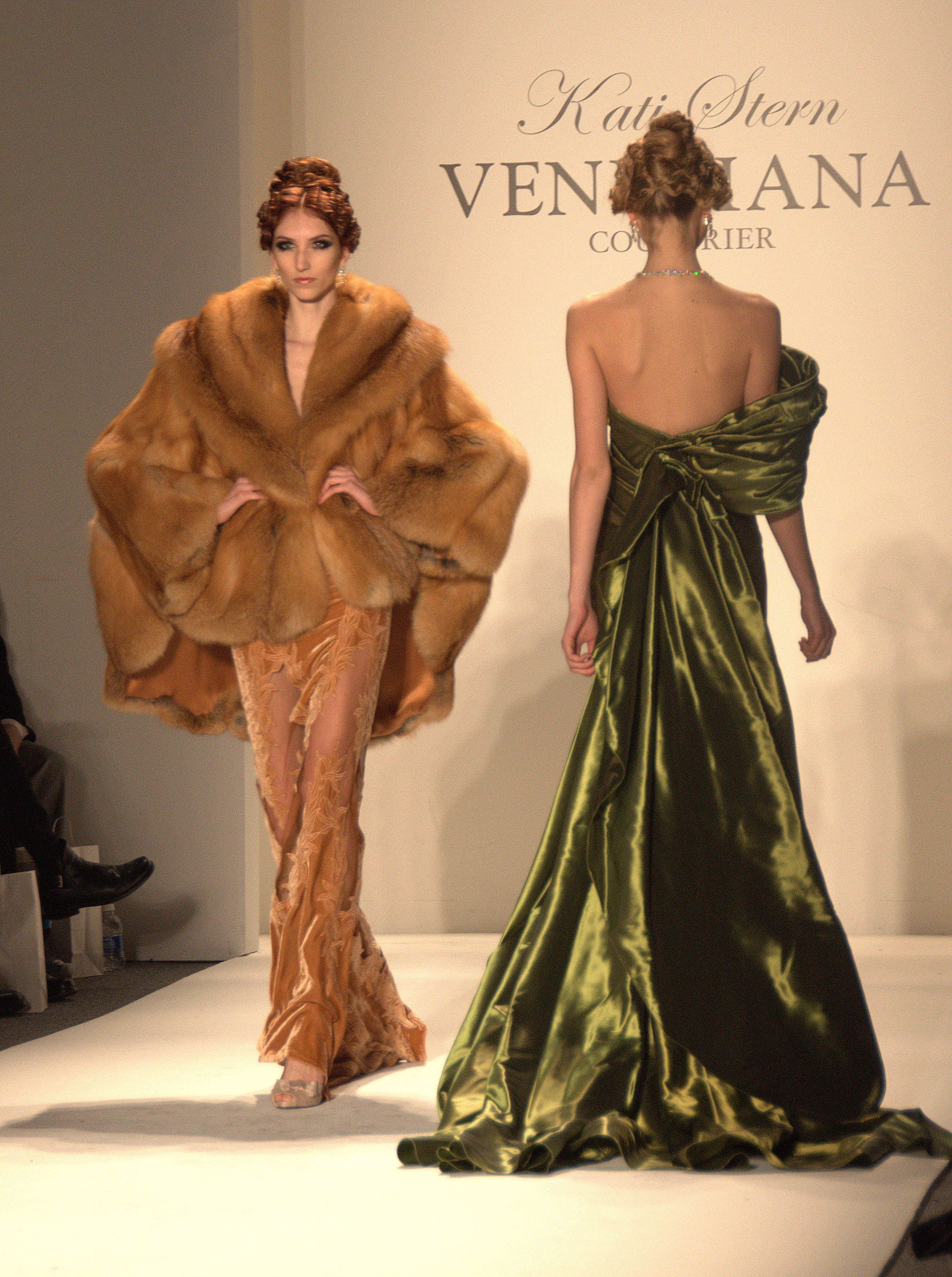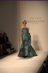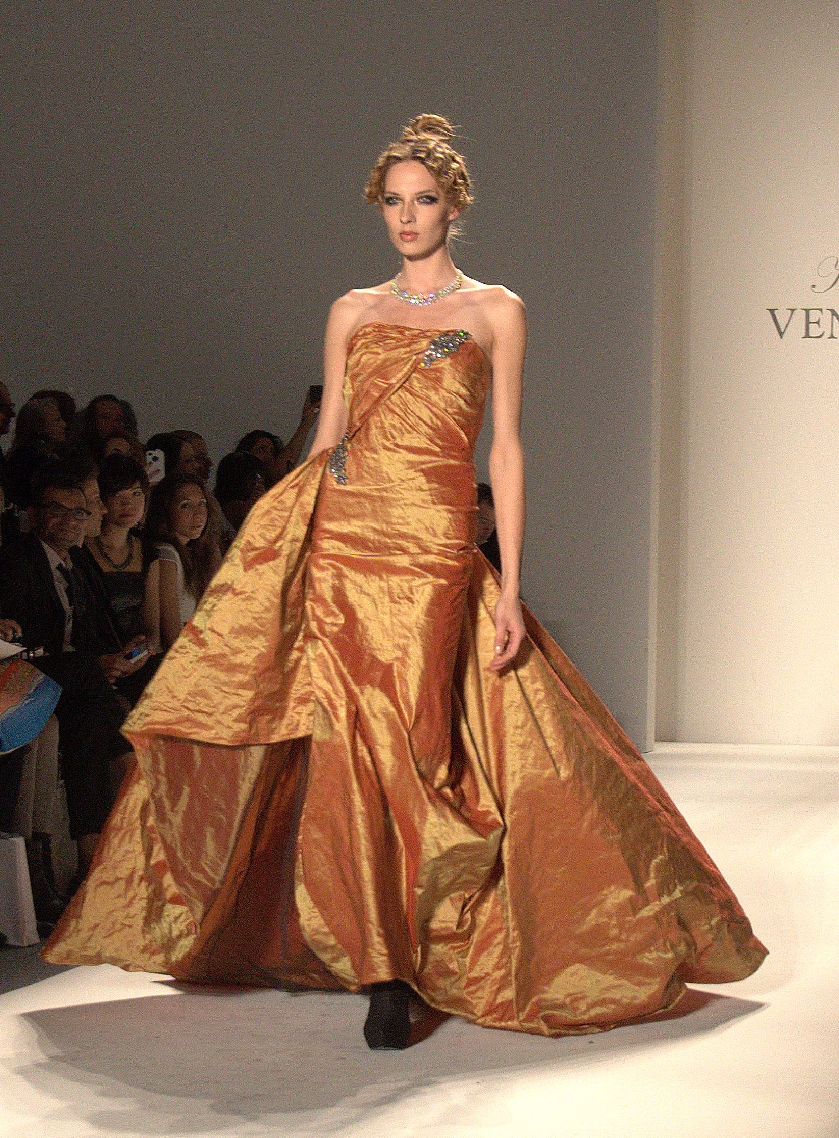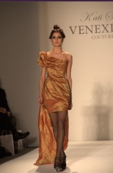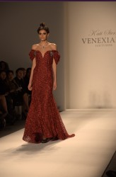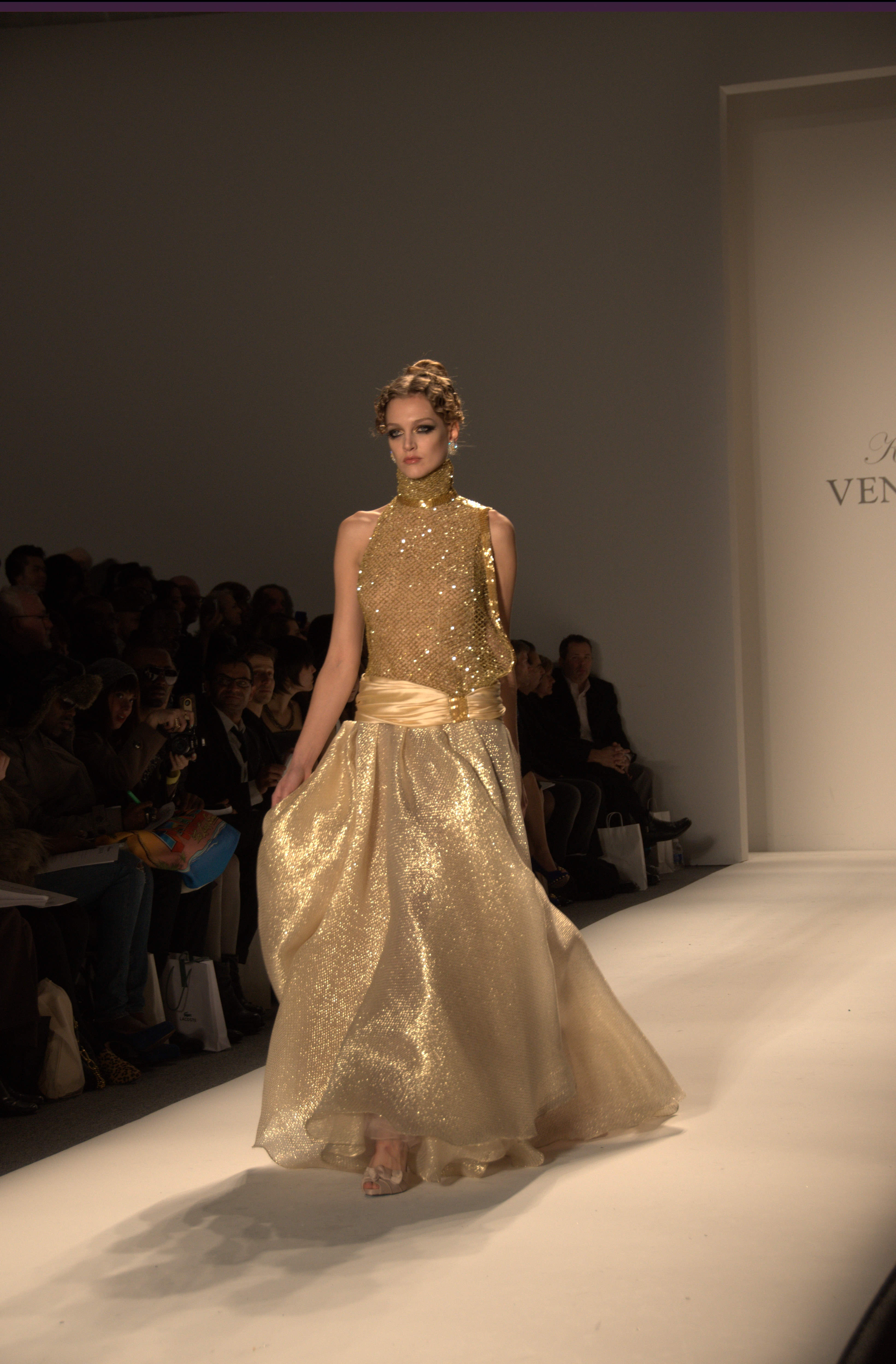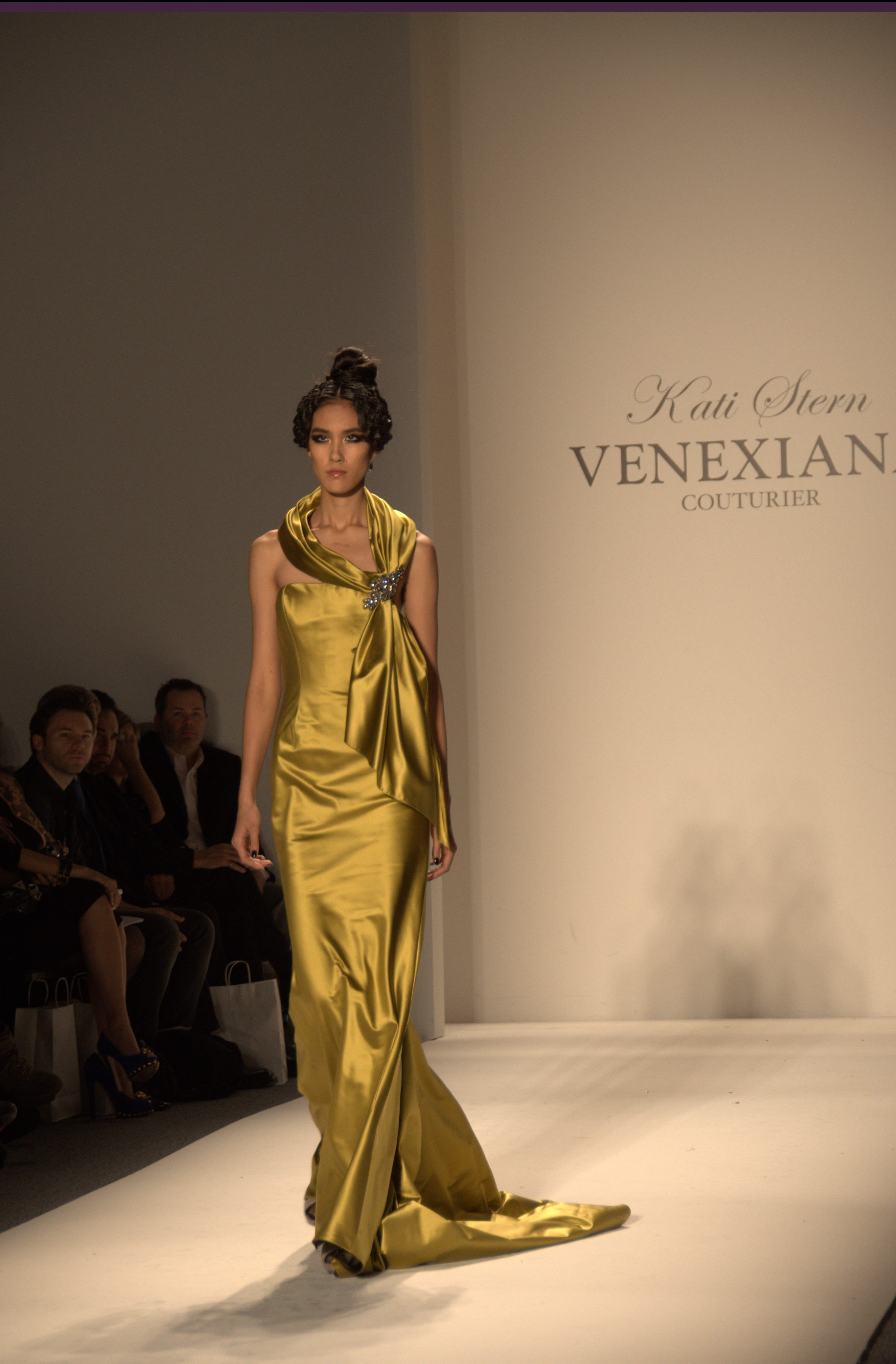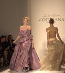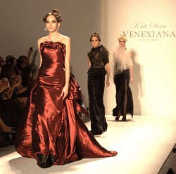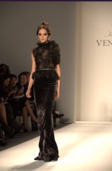 Venexiana wowed the crowd with her expansive collection of formal evening wear and banquet wear. Season after season Ms. Stern produces consistently impressive pieces for her collection. Some are more suited to a nice elegant evening, others are suited for the most exclusive state dinners and fundraisers. All in all she embraced many different colors, fabrics, lengths and material reflectivity to create something for the younger and more mature buyer. Her multidimensional talents can be best appreciated by scrolling through the attached gallery.-Peter Ronen