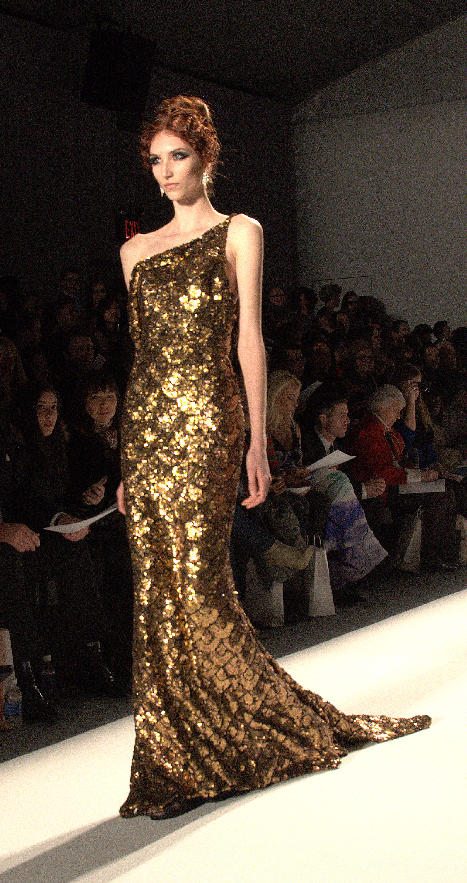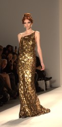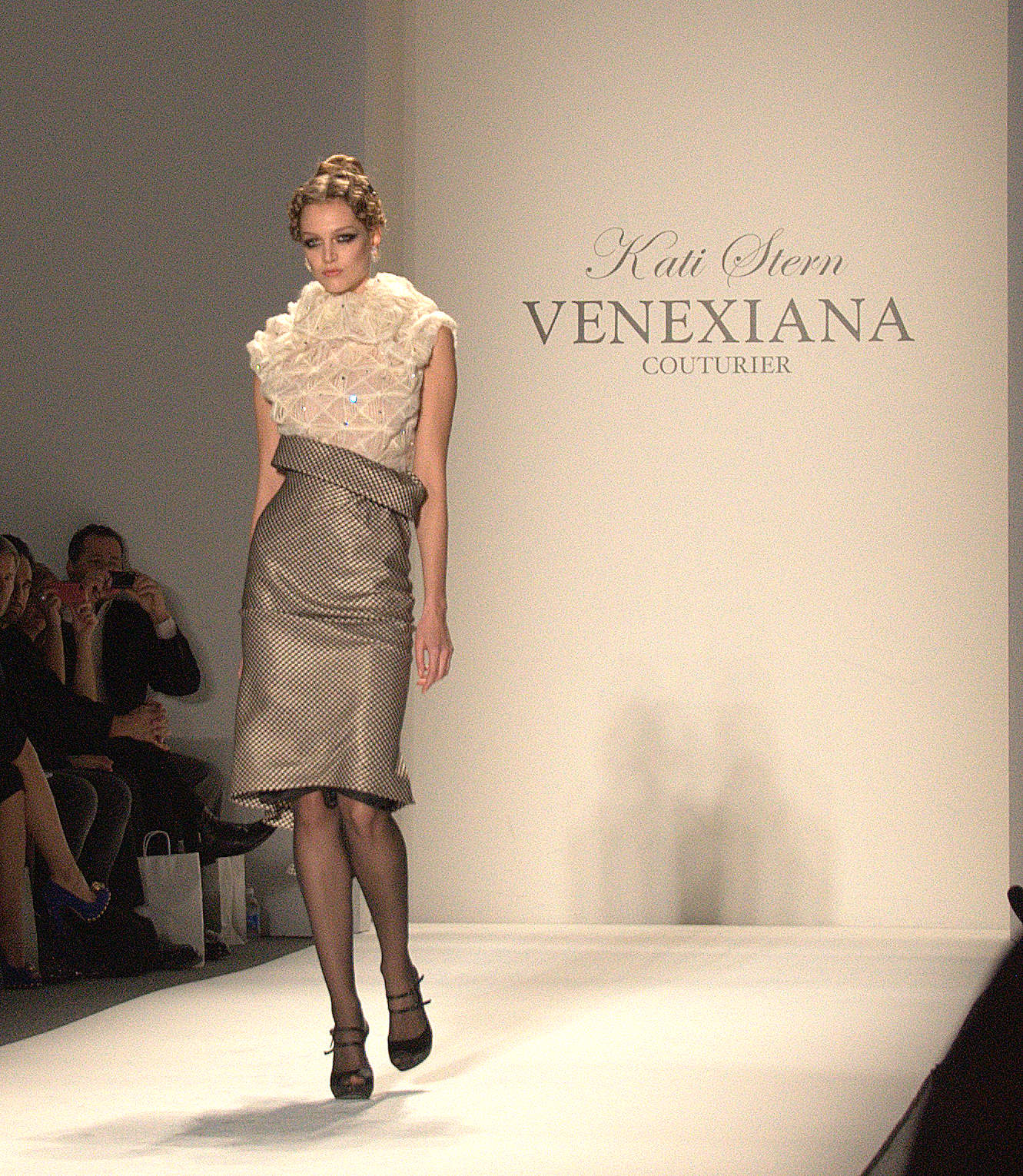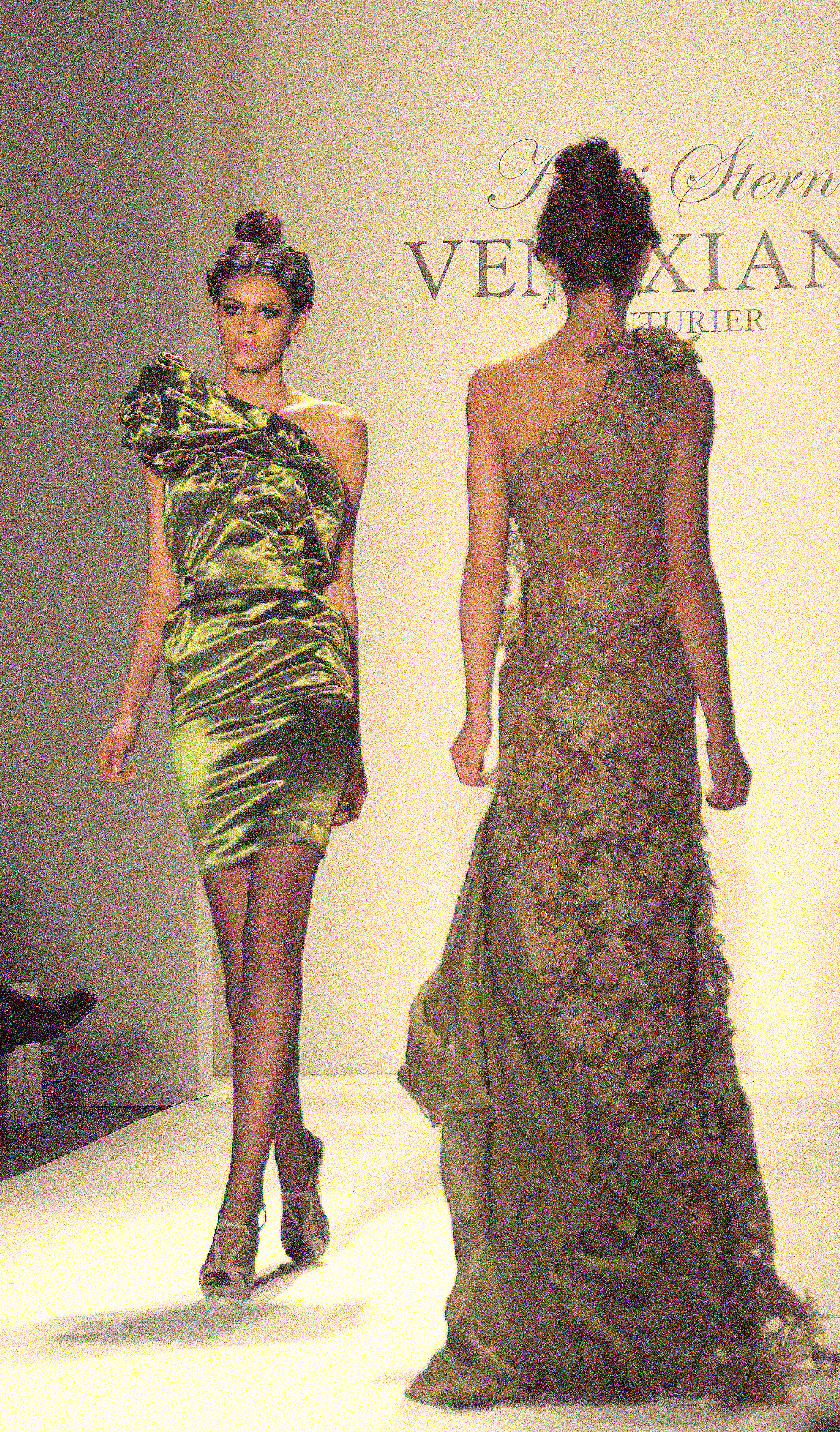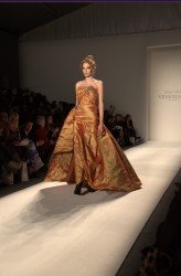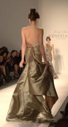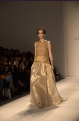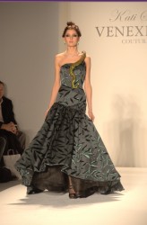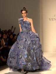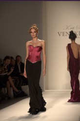 Venexiana wowed the crowd with her expansive collection of formal evening wear and banquet wear. Season after season Ms. Stern produces consistently impressive pieces for her collection. Some are more suited to a nice elegant evening, others are suited for the most exclusive state dinners and fundraisers. All in all she embraced many different colors, fabrics, lengths and material reflectivity to create something for the younger and more mature buyer. Her multidimensional talents can be best appreciated by scrolling through the attached gallery.-Peter Ronen