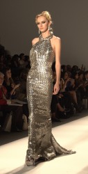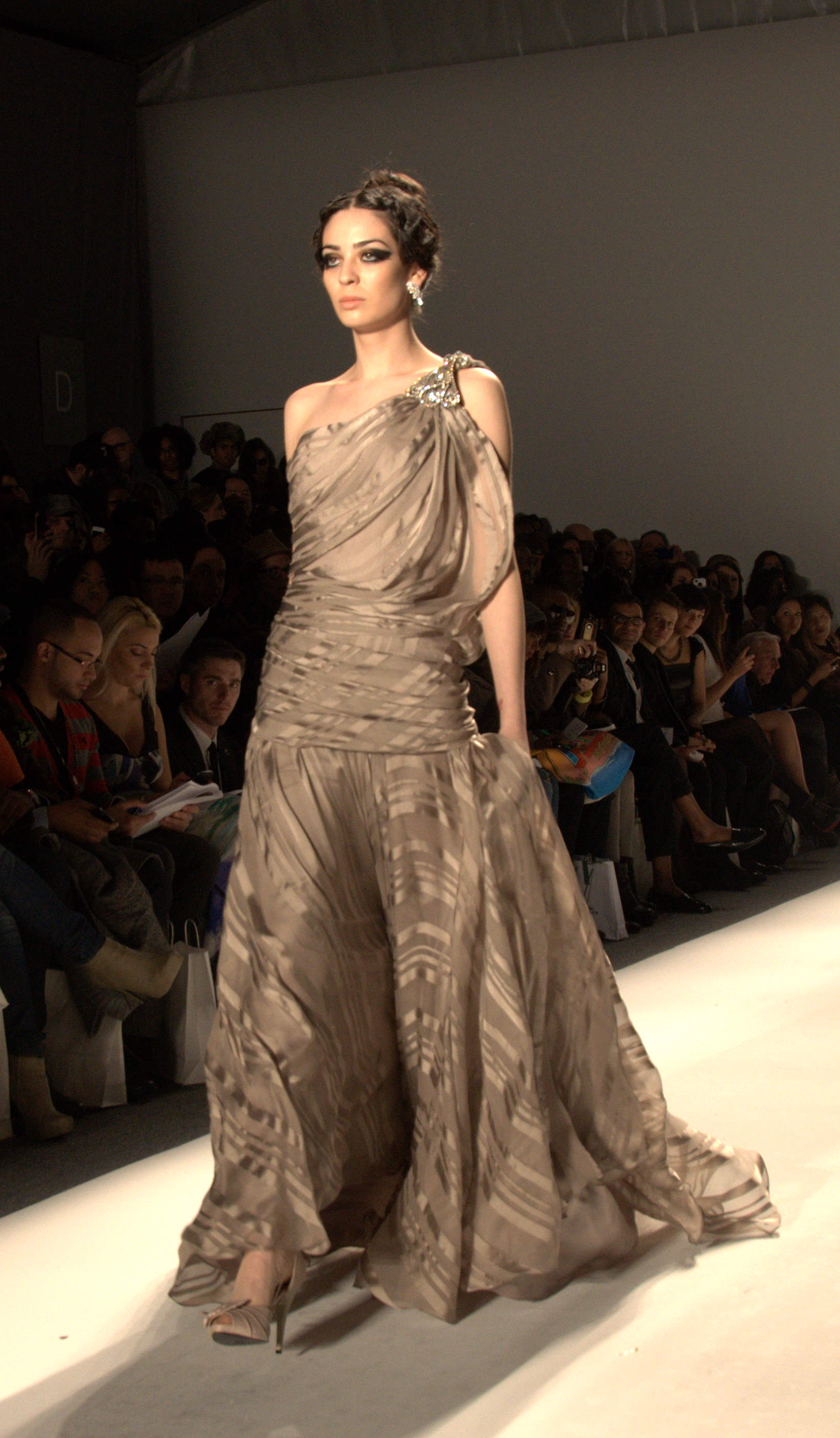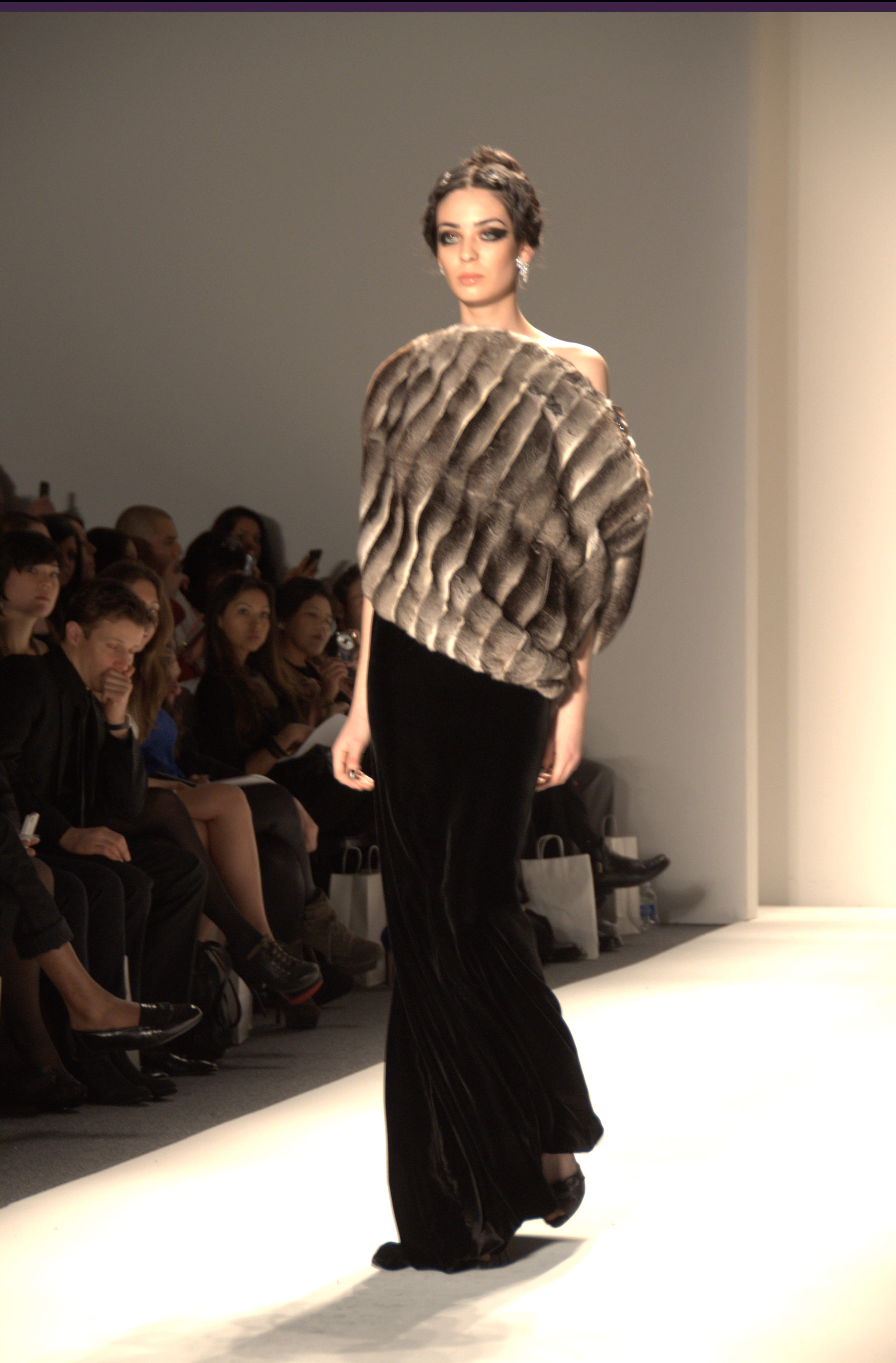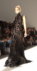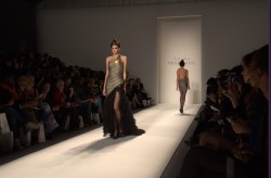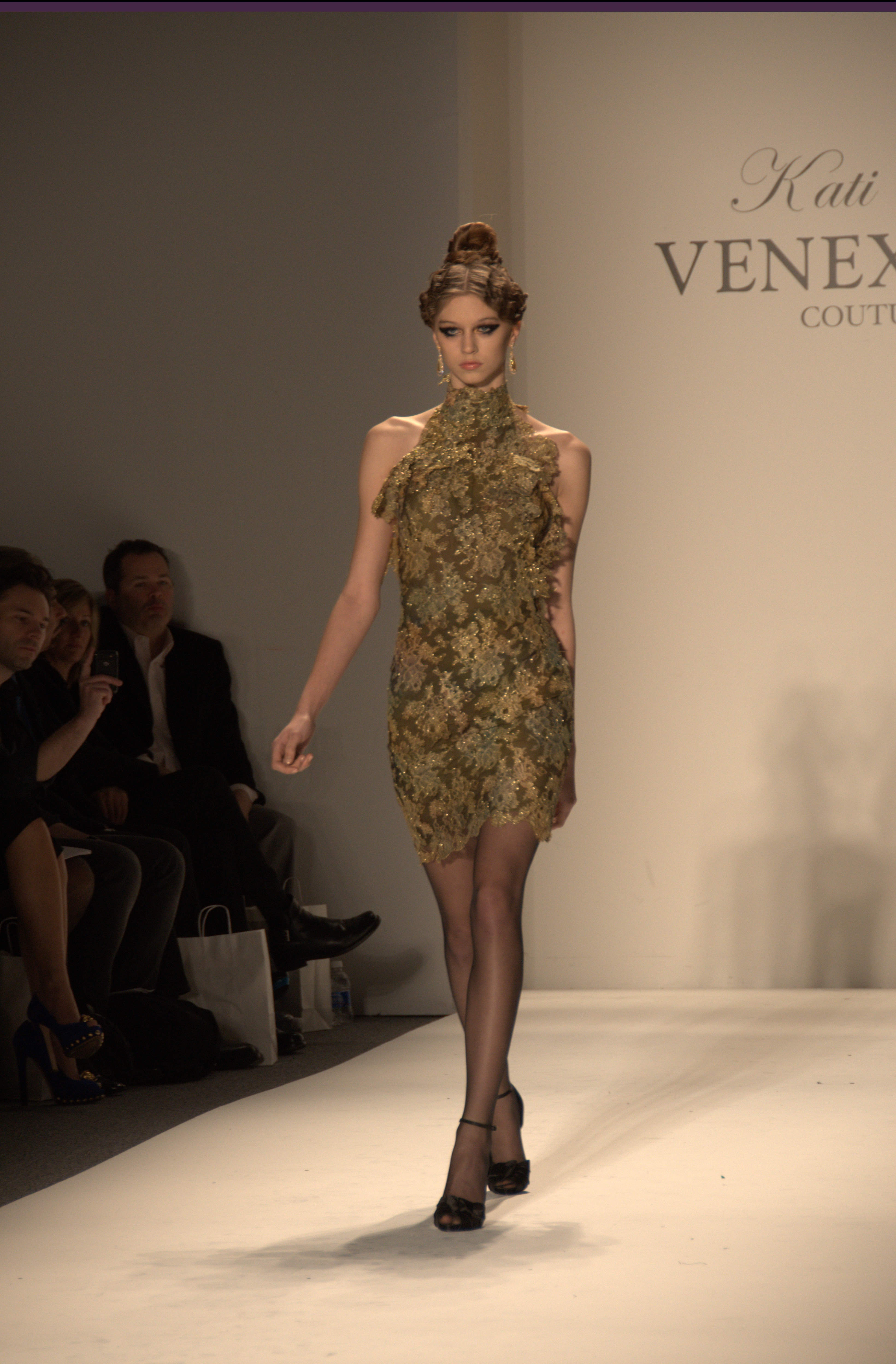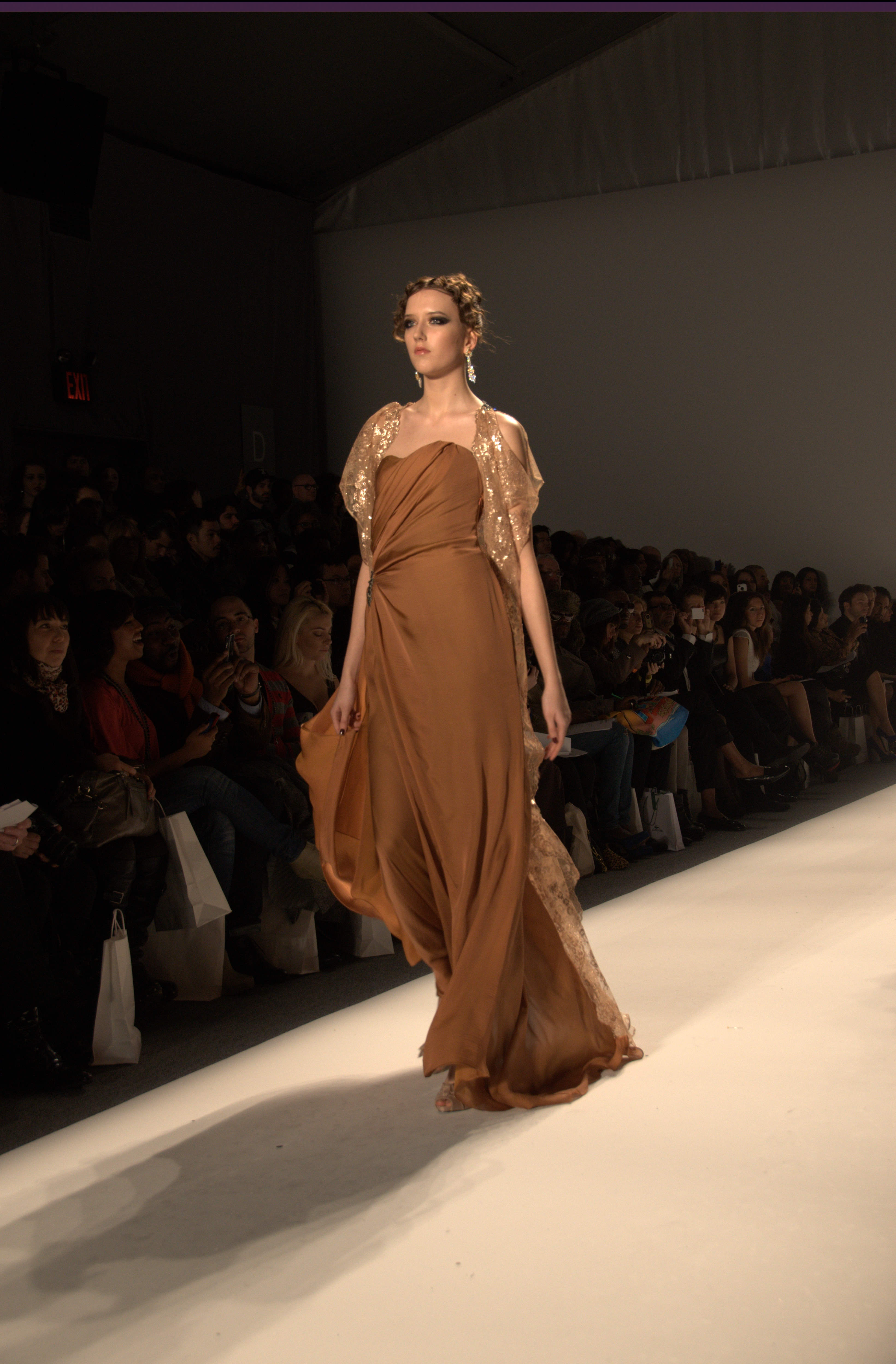 Venexiana wowed the crowd with her expansive collection of formal evening wear and banquet wear. Season after season Ms. Stern produces consistently impressive pieces for her collection. Some are more suited to a nice elegant evening, others are suited for the most exclusive state dinners and fundraisers. All in all she embraced many different colors, fabrics, lengths and material reflectivity to create something for the younger and more mature buyer. Her multidimensional talents can be best appreciated by scrolling through the attached gallery.-Peter Ronen