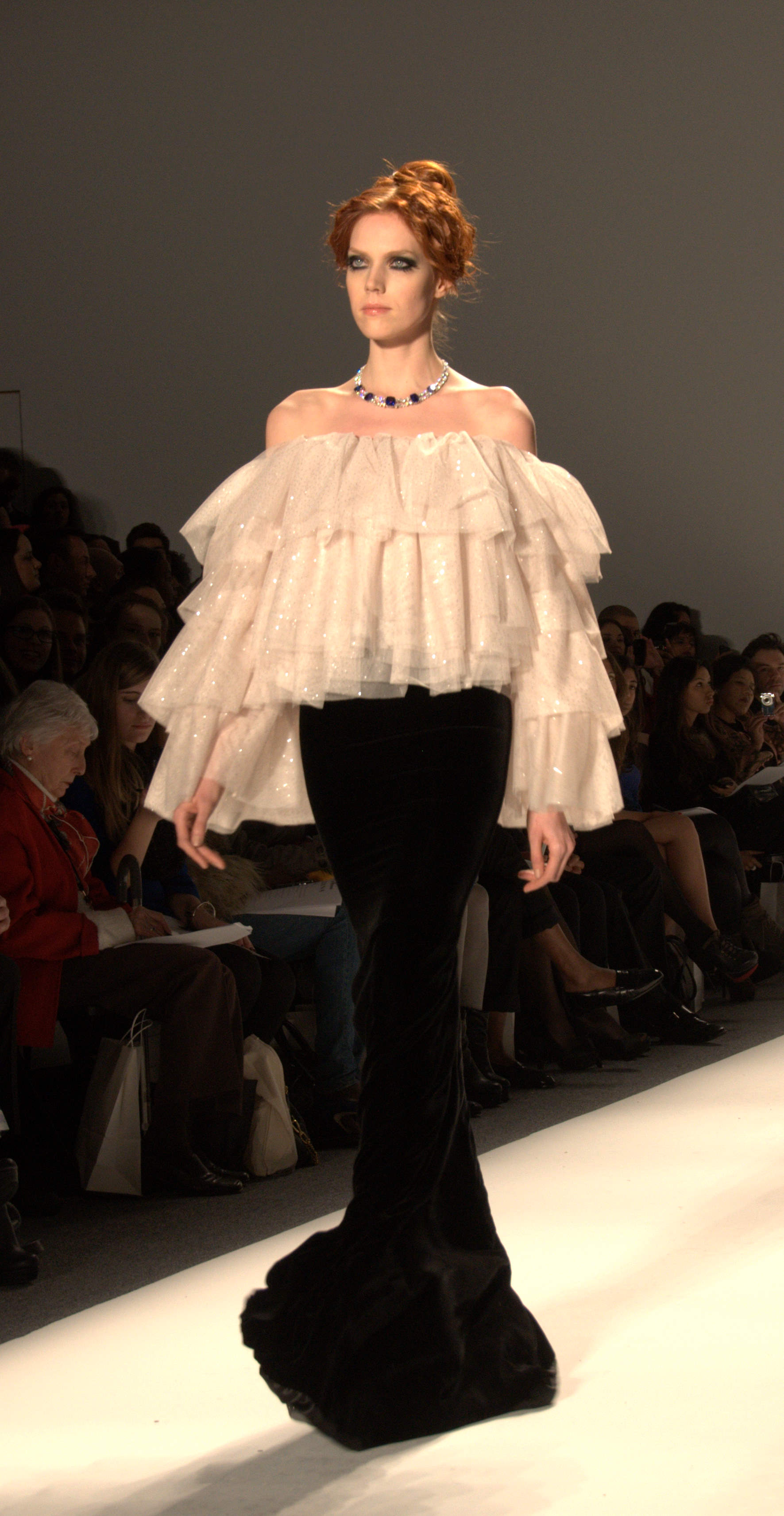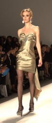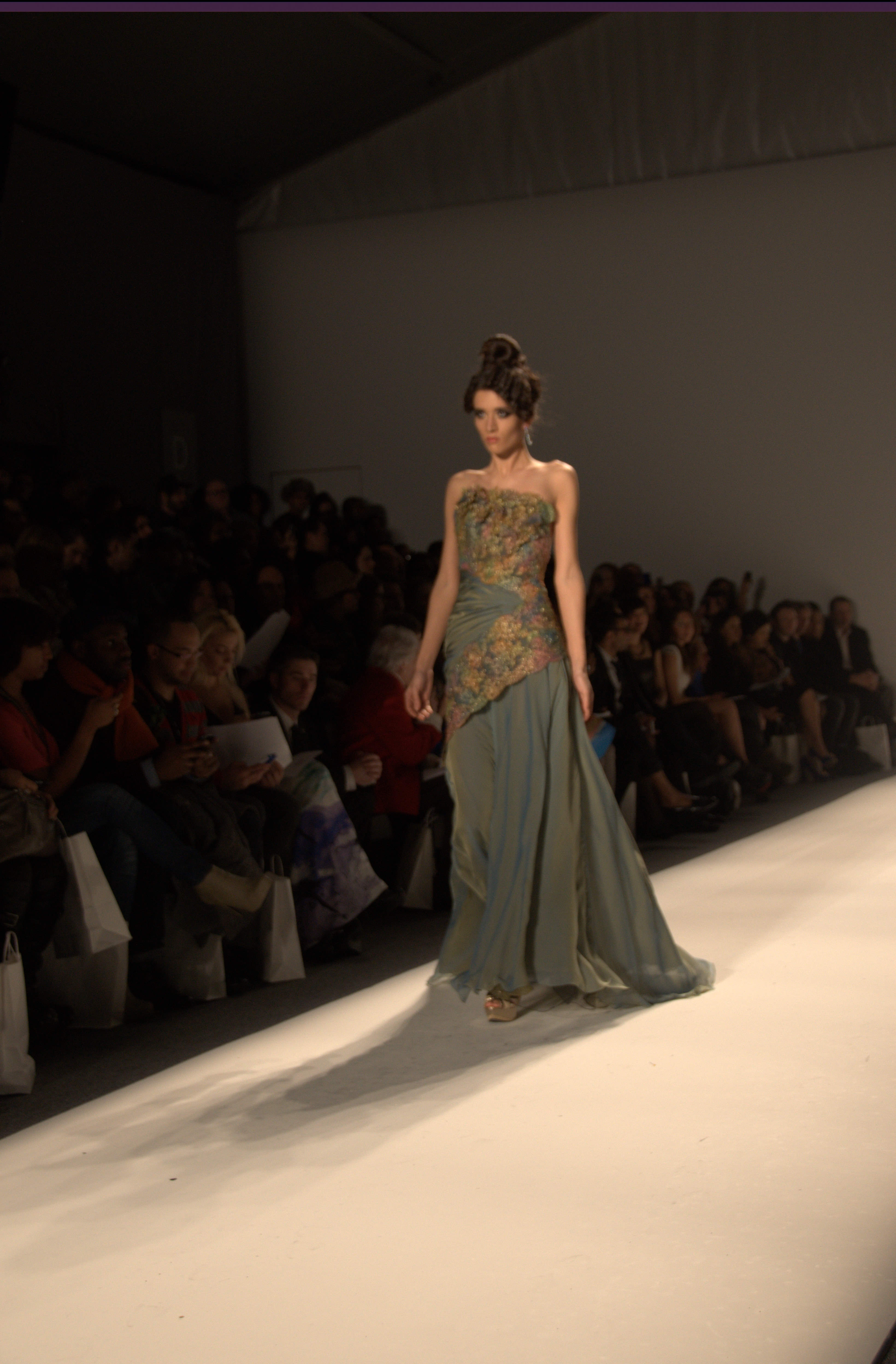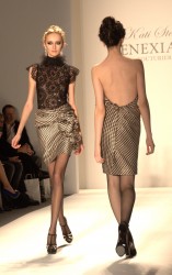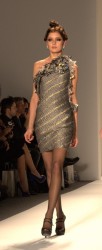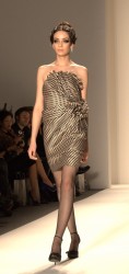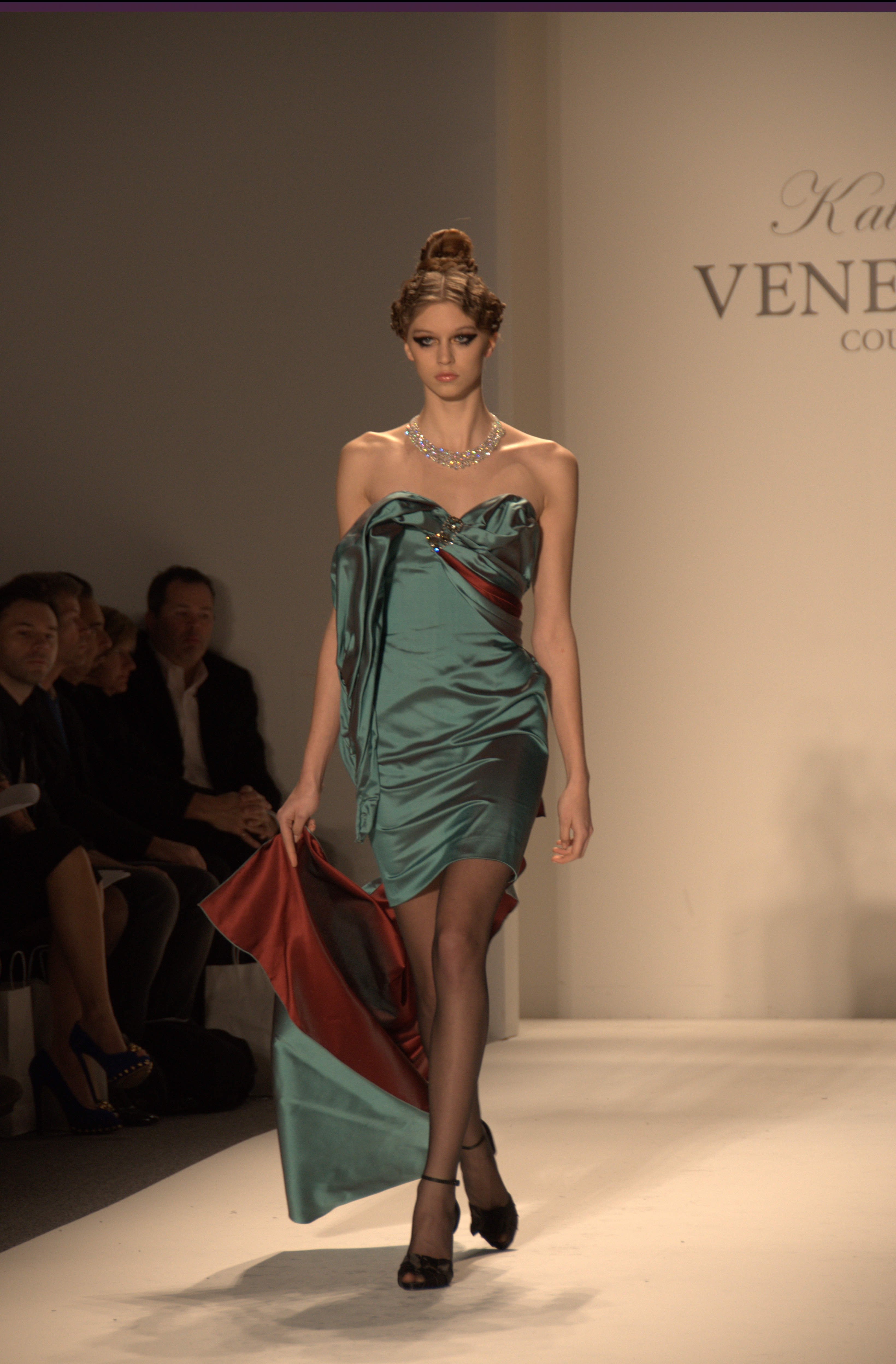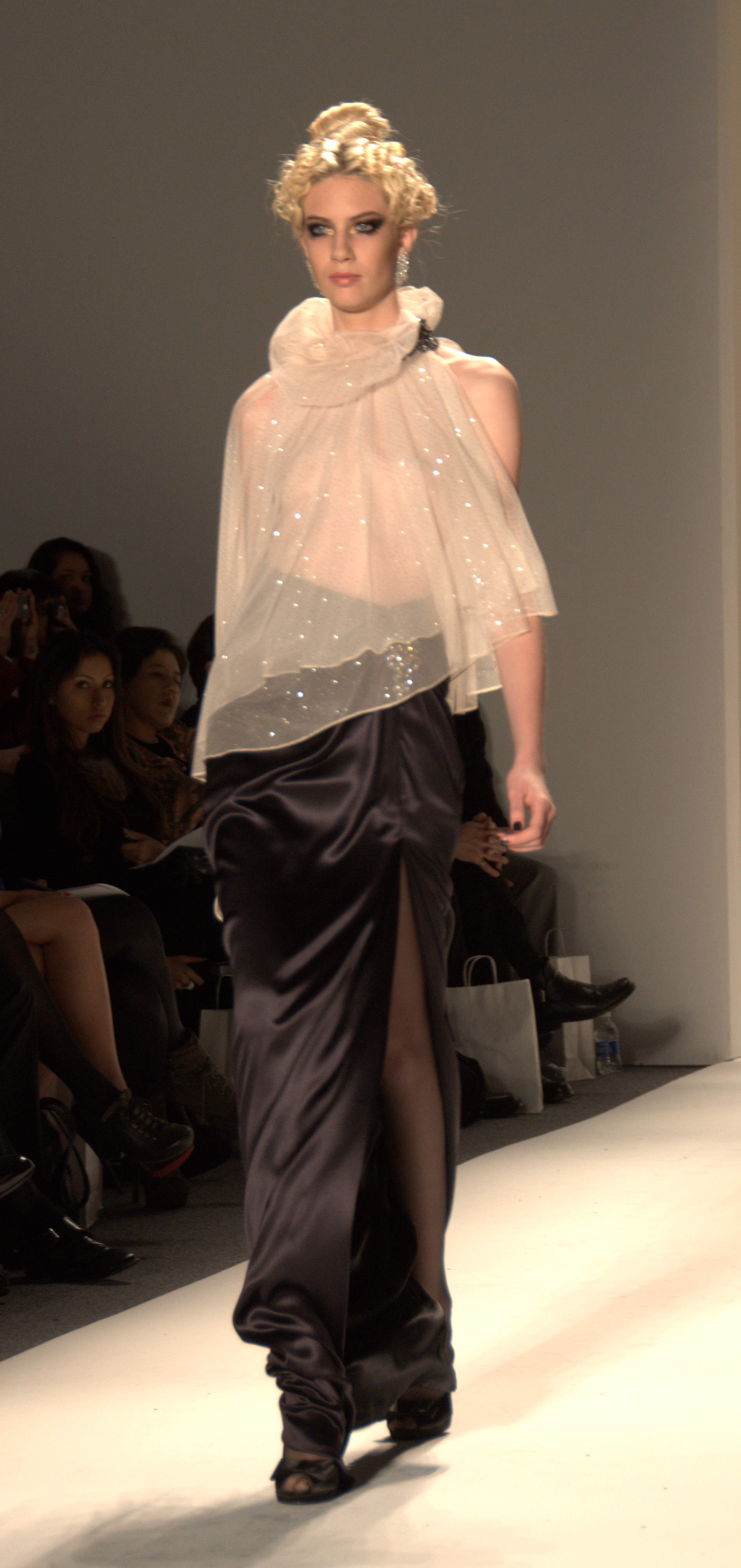 Venexiana wowed the crowd with her expansive collection of formal evening wear and banquet wear. Season after season Ms. Stern produces consistently impressive pieces for her collection. Some are more suited to a nice elegant evening, others are suited for the most exclusive state dinners and fundraisers. All in all she embraced many different colors, fabrics, lengths and material reflectivity to create something for the younger and more mature buyer. Her multidimensional talents can be best appreciated by scrolling through the attached gallery.-Peter Ronen